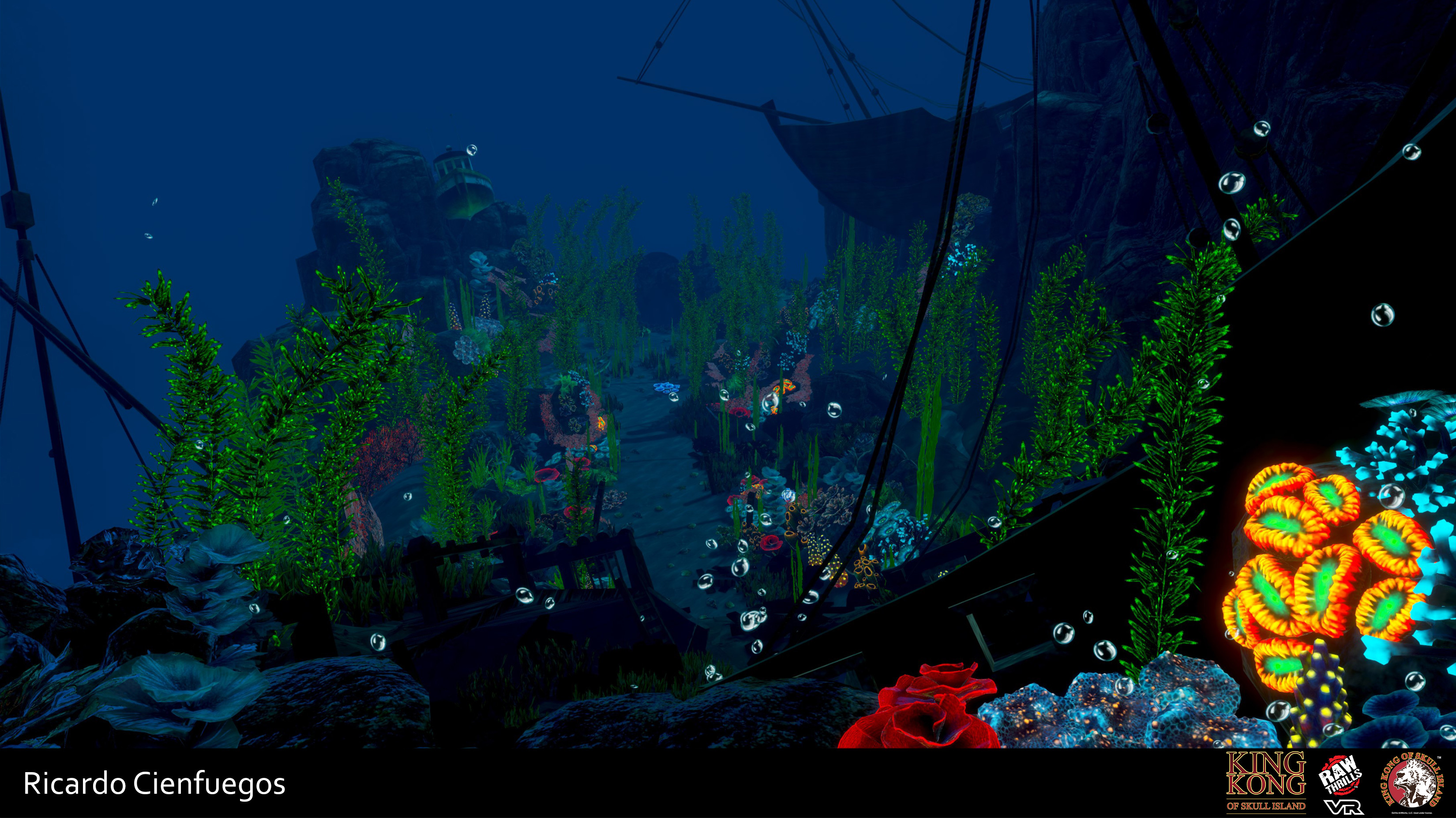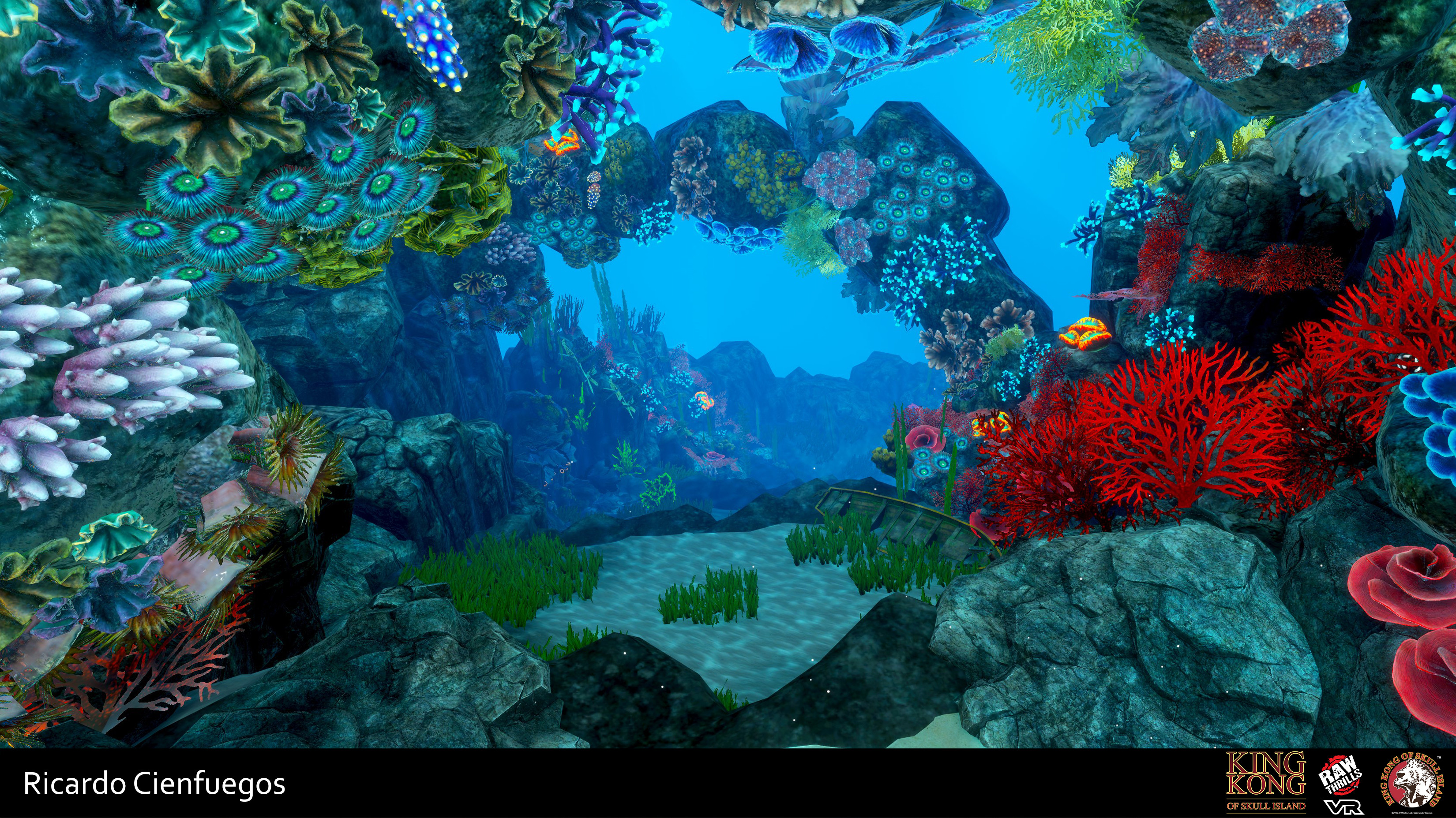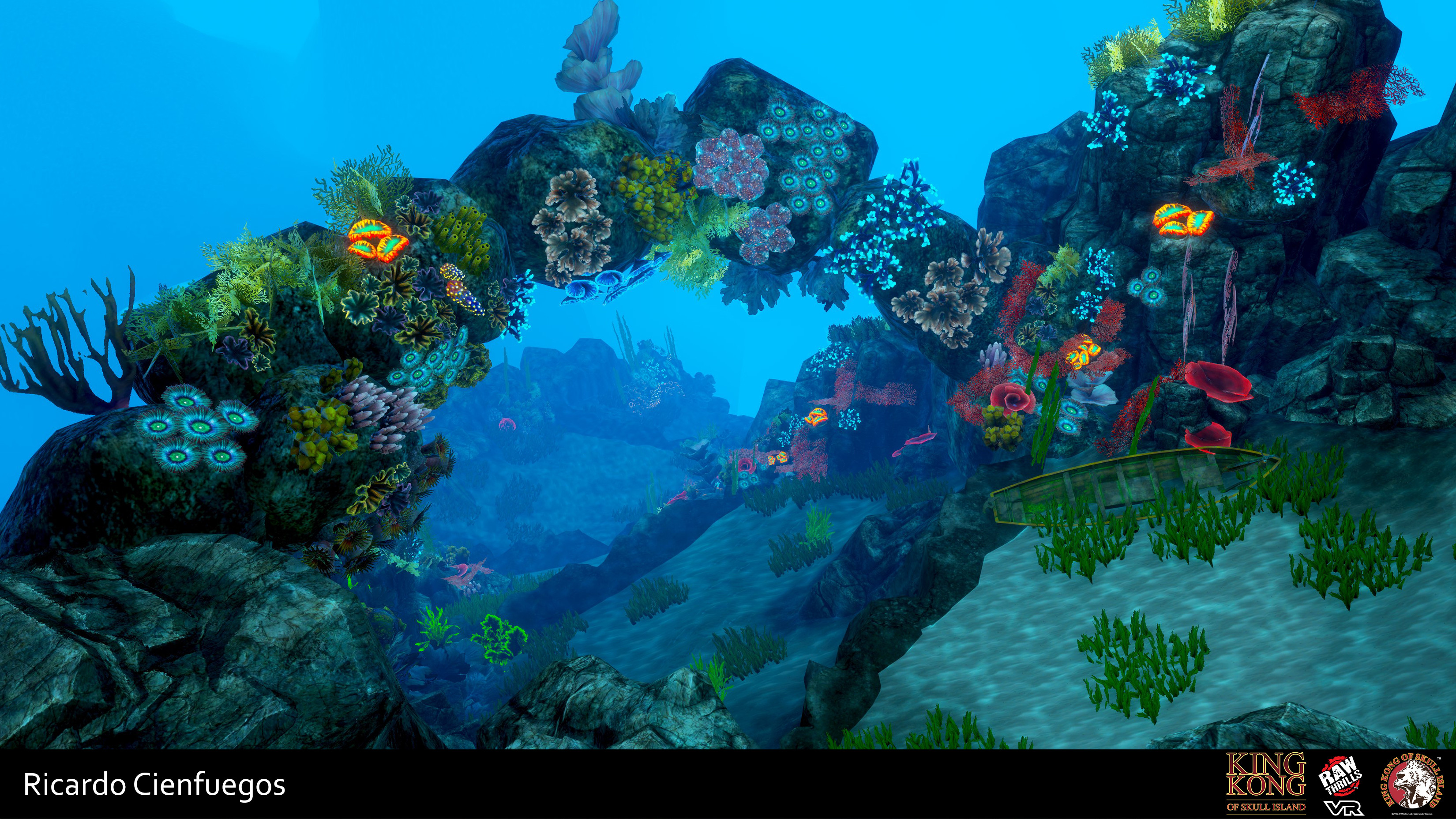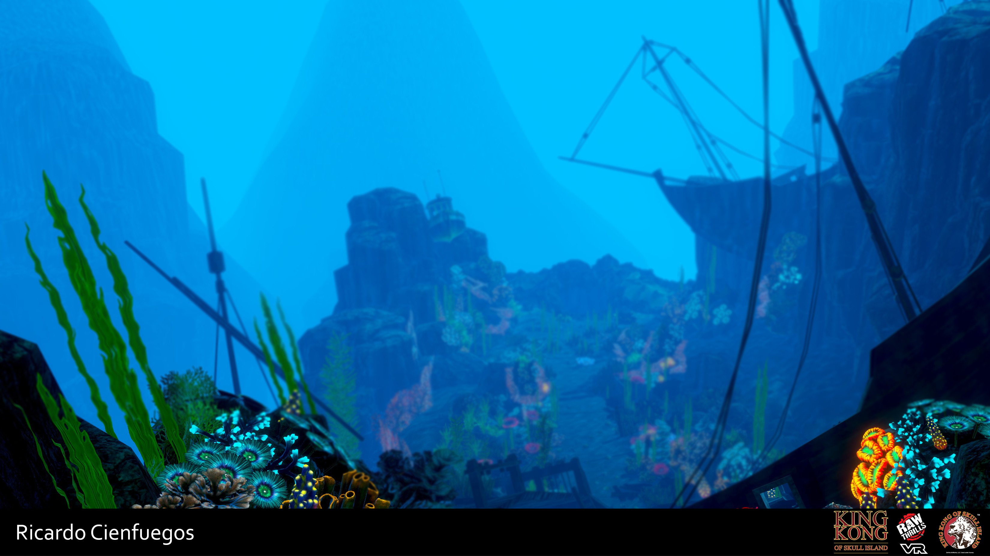 Unreleased chapter to King Kong of Skull Island, based on a concept from Joe Devito. It's a complete underwater biome that evolved into large growth from the King Kong lore. We wanted to escape the island and show beyond the usual earth and hostel landscape. Designing underwater levels was a breath of fresh air to the art and overall player experience. We added new character encounters and interactions that made underwater travel unique. The ending shown here was to help release Kong from his cage and befriend the beast. All following the publishers requests for a family friendly VR game